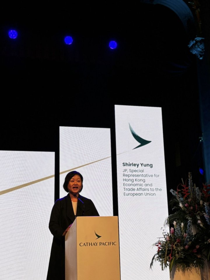 Speaking at the gala dinner in Brussels on 18 September to mark the occasion, Ms Shirley Yung, Special Representative for Hong Kong Economic and Trade Affairs to the European Union, remarked, 'this is more than just a resumption of flight, but also a strong vote of confidence in the recovery of international travel and renewed connectivity between Hong Kong and Europe.'; Ms Yung welcomed the steadily rebuilding of Cathay Pacific's European network, highlighting the special significance of Brussels being not only the capital of Belgium but also as the centre of Europe.